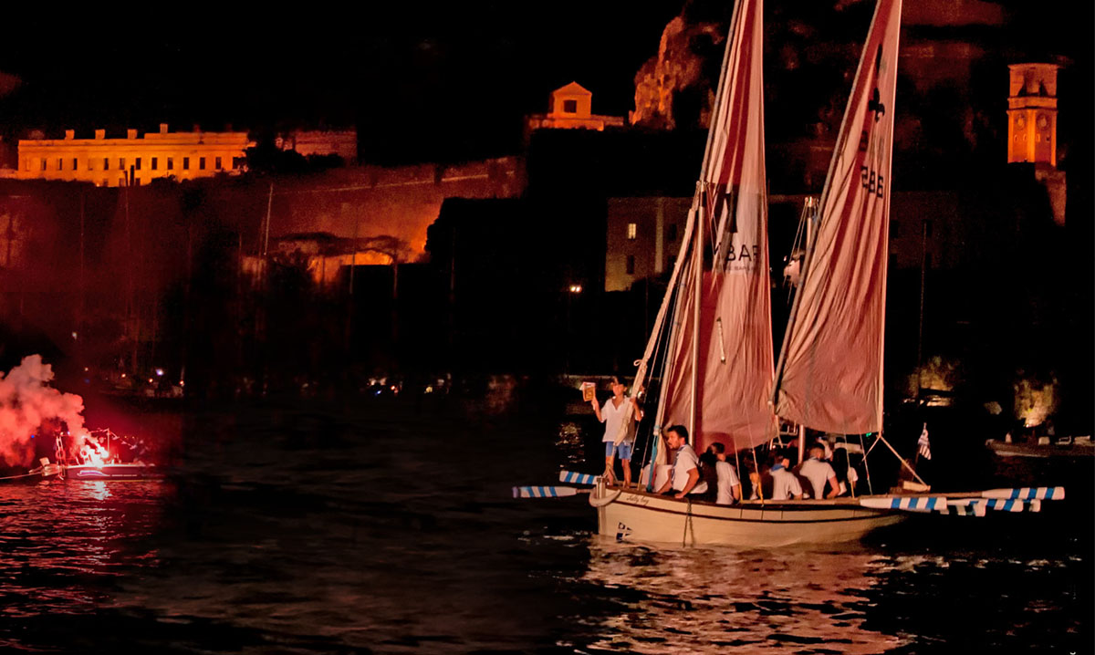 Η μαγευτική αυτή βραδιά όμως δεν περιλάμβανε μόνο την περατζαδα με βάρκες, αλλά είχε και συνέχεια με παραδοσιακούς χορούς από την Κρήτη την Κέρκυρα και την Μικρά Ασία με τη συμμετοχή πολιτιστικών σωματείων.