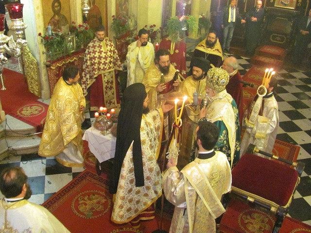 Το πρωί της Παρασκευής 11 Φεβρουαρίου 2011 ο Σεβασμιώτατος κ. Νεκτάριος τέλεσε την Θεία Λειτουργία σε έναν κατάμεστο ναό, ευλόγησε τα οπωρικά προς τιμήν του Αγίου Βλασίου, του οποίου τεμάχιο λειψάνου φυλάσσεται στον Μητροπολιτικό Ναό, ενώ στο κήρυγμά του επεσήμανε τα τρία σημεία που καθιστούν την αγιότητα πραγματική κατάσταση στη ζωή της πίστης. Άγιος είναι αυτός που έχει επίγνωση του νοήματος της ζωής, το οποίο περνά από τη σχέση με το Θεό. Είναι εκείνος που βιώνει την αληθινή πνευματικότητα, όχι της γνώσης απλώς, αλλά της Θεογνωσίας, χωρίς να συμβιβάζεται με το κοσμικό πνεύμα. Άγιος είναι αυτός που είναι ενεργό μέλος του Σώματος του Χριστού, της Εκκλησίας και όχι αυτός που ζητά την σωτηρία για τον εαυτό του μόνο. Τα τρία αυτά κριτήρια έζησε η Αγία Θεοδώρα ως αυτοκράτειρα και ως μοναχή. Τα τρία αυτά κριτήρια, τόνισε ο Σεβασμιώτατος, αποτελούν την ελπίδα για αλλαγή στην πορεία της κοινωνίας μας. Αν μάθουμε να βρίσκουμε νόημα ζωής όχι στα αγαθά ή στα δικαιώματά μας, αλλά στη σχέση μας με το Θεό, στην τήρηση των εντολών Του και στην αγάπη για το συνάνθρωπο, τότε θα ξεπεράσουμε την νοοτροπία της ενασχόλησης μόνο με τον πλουτισμό και την ατομική δόξα, η οποία μας οδήγησε στην πλήρη αδιαφορία για τους άλλους και, κατ’ επέκταση, στην κρίση. Αν μάθουμε τι σημαίνει αληθινά πνευματικός άνθρωπος και δεν νικιόμαστε από το πνεύμα της υπερηφάνειας και του εγωισμού που η κοσμική γνώση φέρνει, αλλά επιλέξουμε τη σχέση με το Θεό που μας φωτίζει αληθινά, τότε δεν θα διατρεχόμαστε από νοοτροπίες εκδίωξης του αληθινού ήθους από τη ζωή μας. Αν μάθουμε να είμαστε ενεργά μέλη του Σώματος του Χριστού, της Εκκλησίας δηλαδή, τότε δεν θα εγκλωβιζόμαστε στον ατομοκεντρισμό, αλλά θα πορευόμαστε μαζί με τους συνανθρώπους μας προς την αληθινή πρόοδο. Αυτή η διαδρομή αποτελεί και την μόνη διέξοδο που θα κάνει την πατρίδα μας να ξεπεράσει την κρίση. Αν ως κοινωνία συνεχίσουμε την ξεθεμελίωση του ήθους των αγίων, τότε ας μην περιμένουμε ουσιαστική λύτρωση, κατέληξε ο Σεβασμιώτατος.