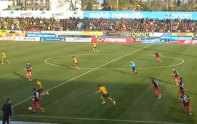 4΄: Καλή εκτέλεση φάουλ του Γραμμόζη, η μπάλα περνά ελάχιστα άουτ.