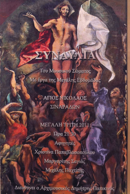 Το Μουσικό Σώμα της Φιλαρμονικής Σιναράδων διοργανώνει συναυλία την Μ. Τρίτη στις 21:30 με ύμνους της Μεγάλης Εβδομάδας στον Ιερό Ναό του Αγίου Νικολάου Σιναράδων.