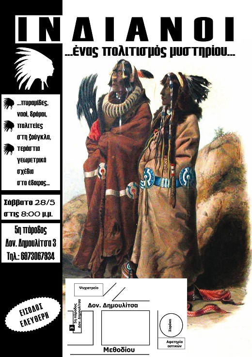 Η Πολιτιστική Καλλιτεχνική Κίνηση “9 Μούσες” διοργανώνει το Σάββατο 28 Μαΐου στις 20:00ι ομιλία με θέμα “Ινδιάνοι, ένας πολιτισμός μυστηρίου”.