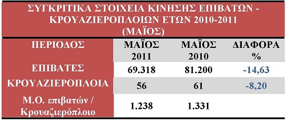 Τα συγκριτικά στατιστικά στοιχεία κίνησης επιβατών – κρουαζιερόπλοιων του Μάη του 2011 σε σχέση με τον αντίστοιχο μήνα του 2010 έδωσε στο φως της δημοσιότητας ο Οργανισμός Λιμένος Κέρκυρας.