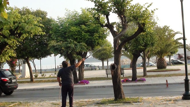Καλούμε τους Κερκυραίους να συνδράμουν στην προσπάθεια αυτή και να μην φοβηθούν, όταν δουν τα συνεργεία με μεγάλη μάνικα, να λούζουν τα δέντρα με το διάλυμα αυτό γιατί περιέχει μόνον σαπούνι και φωτιστικό οινόπνευμα.