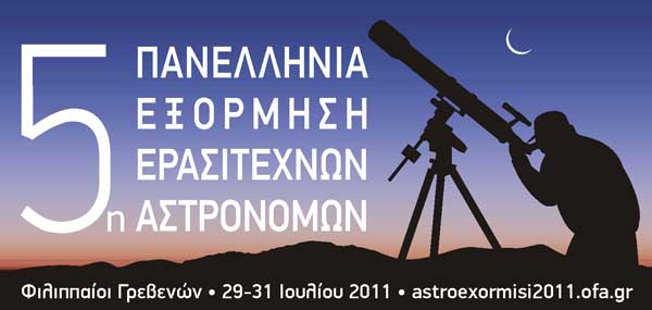 Η Αστρονομική Εταιρεία Κέρκυρας με ανακοίνωση της ενημερώνει τα μέλη και τους φίλους της για την συμμετοχή της στην 5η Πανελλήνια Εξόρμηση Ερασιτεχνών Αστρονόμων. Η εξόρμηση θα διεξαχθεί από 29 έως 31 Ιουλίου 2011 στις κατασκηνώσεις στην τοποθεσία Κουρούνα, λίγο έξω από τους Φιλιππαίους Γρεβενών σε υψόμετρο 1400 μέτρων.