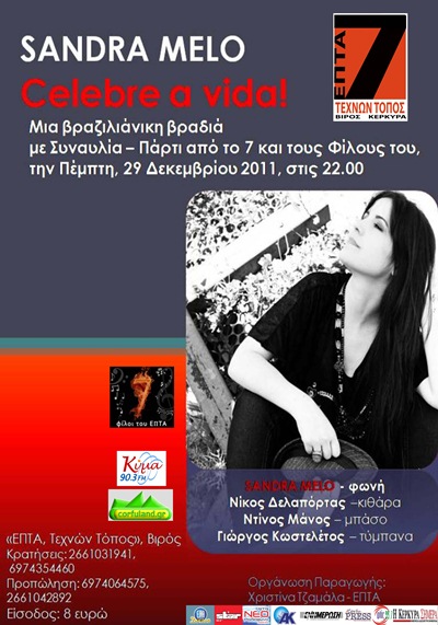 Η βραζιλιάνα τραγουδίστρια/συνθέτης Sandra Melo ξεκίνησε την καριέρα της το 1991, εμφανιζόμενη στην πόλη καταγωγής της Belo Horizonte και αργότερα στο Sao Paolo. Έχει διακριθεί σε πολλούς διαγωνισμούς για τις φωνητικές, καθώς και για τις συνθετικές της ικανότητες! Τον καιρό αυτό ολοκληρώνει τις σπουδές της στο New Park Music School στο Δουβλίνο.
