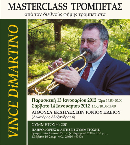 Ο Φιλαρμονικός Σύλλογος Σκριπερού και οι «Φίλοι της Μουσικής Κέρκυρας» Ιόνιο Ωδείο, διοργανώνουν Master class τρομπέτας από τον διεθνούς φήμης τρομπετίστα Vince DiMartino.