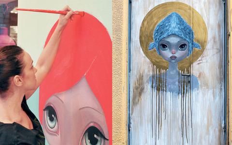 μικροσκοπικούς πίνακες, όσο και σε μεγάλης κλίμακας τοιχογραφίες. Οι αναφορές της αντλούν από τη γιαπωνέζικη σχολή της εικονογραφίας, manga, φιλτραρισμένα μέσα από τη δυτική ματιά και την προσωπική της ποπ σουρεαλιστική αισθητική. Είναι εξίσου γνωστή και για τις συνεργασίες της με το καλλιτεχνικό της alter-ergo SER.Η δουλειά της