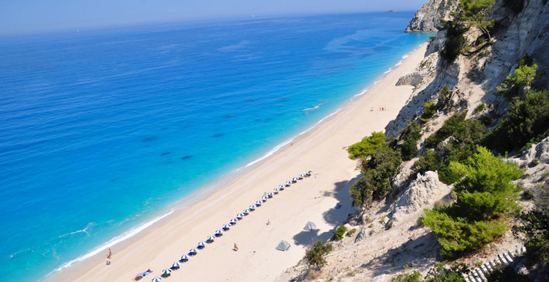 Στην πρώτη θέση φιγουράρει η αγαπημένη παραλία των Εγκρεμνών στη Λευκάδα. Η συντάκτρια παραδέχεται ότι είναι πολύ δύσκολο να βρεις στo νησί σημείο που η θεά στο Ιόνιο να μην είναι εκπληκτική, ωστόσο αφού έπρεπε να επιλέξει, προτείνει τους Εγκρεμνούς, τονίζοντας την απόλυτα ταιριαστή αντίθεση της λευκής άμμου με τα τιρκουάζ νερά.