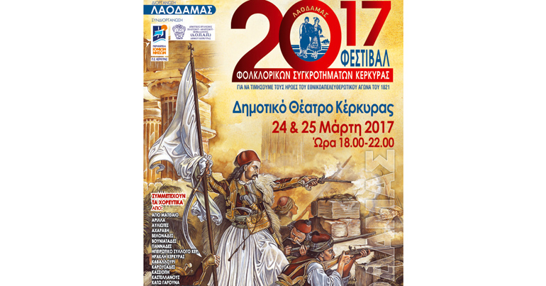 Το «20ο Φεστιβάλ Φολκλορικών Συγκροτημάτων Κέρκυρας» θα διεξαχθεί στο δημοτικό θέατρο Κέρκυρας την Παρασκευή 24 και το Σάββατο 25 Μάρτη 2017 από τις 6 το απόγευμα έως τις 11 το βράδυ, δια χειρός “ΛΑΟΔΑΜΑ”.