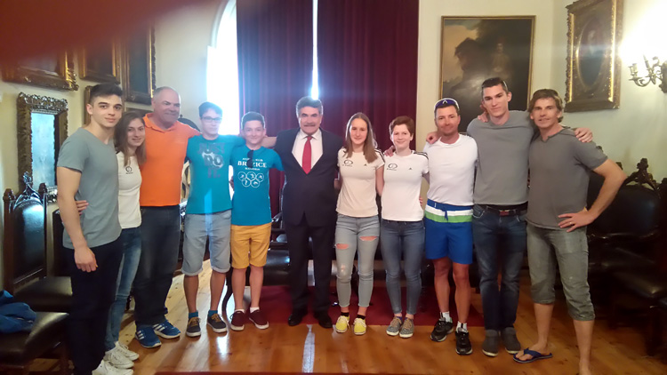 Το Ιστορικό Δημαρχείο, όπου συναντήθηκαν με το Δήμαρχο Κώστα Νικολούζο, επισκέφθηκαν την Πέμπτη 6 Απριλίου, Σλοβένοι αθλητές, μέλη της Εθνικής ομάδας Στίβου της Σλοβενίας.