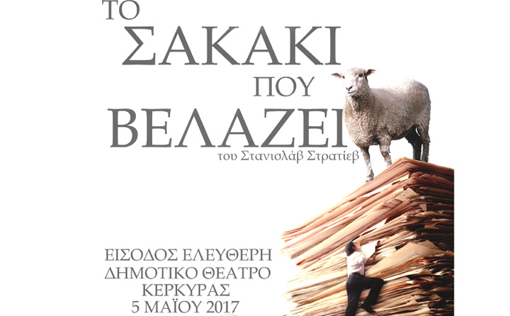 Η θεατρική ομάδα του 1ου Γενικού Λυκείου Κέρκυρας παρουσιάζει τη θεατρική παράσταση “Το σακάκι που βελάζει” του Στανισλάβ Στρατίεβ την Παρασκευή 5 Μαΐου 2017, ώρα 20:30 στην κεντρική σκηνή του Δημοτικού Θεάτρου με ελεύθερη είσοδο.