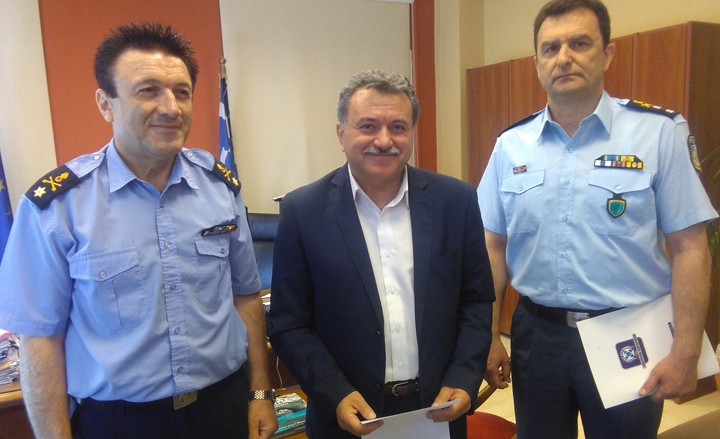 Συνάντηση του Περιφερειάρχη Θ. Γαλιατσάτου με τους Περιφερειακούς Δ/ντες Αστυνομίας Γ. Τσιρογιάννη και Πυροσβεστικής Ευθ. Γεωργακόπουλο. Οι πόροι θα διατεθούν για την αναβάθμιση της επιχειρησιακής ικανότητας των δύο Υπηρεσιών σε σχέση με την οδική ασφάλεια.