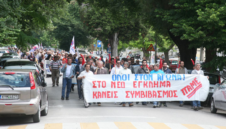 “Τα μέτρα που συνεχώς εδώ και χρόνια παίρνουν οι κυβερνήσεις πρώτα του ΠΑΣΟΚ, μετά της Ν.Δ., μετά και των δύο μαζί και τώρα της κυβέρνησης του ΣΥΡΙΖΑ είναι ισοδύναμα με κήρυξη πολέμου από τους καπιταλιστές ενάντια στους εργάτες, από αυτούς που λυμαίνονται τους κόπους μας, ενάντια στο σύνολο των λαϊκών στρωμάτων. Έχει έρθει από καιρό η ώρα να ξεσηκωθούμε. Όλοι και όλες πρέπει να βγούμε στους δρόμους.