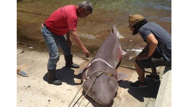 Ένας καρχαρίας «σαπουνάς», μήκους περίπου τριών μέτρων, πιάστηκε στα δίχτυα ψαρά στην Ιθάκη, τη Δευτέρα 29 Μαΐου 2017. Το συγκεκριμένο είδος είναι γενικά αβλαβές για τους ανθρώπους.