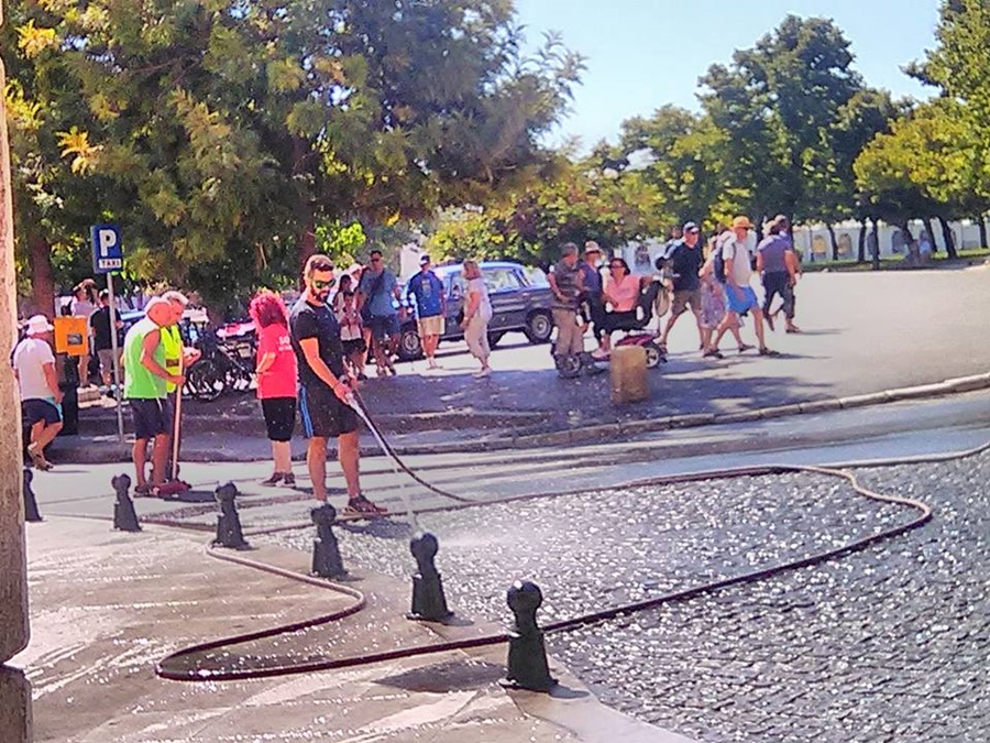 Χωρισμένοι σε ομάδες και εξοπλισμένοι με πλυστικά μηχανήματα και ειδικά απορυπαντικά καθάρισαν το Σαροκο, την Γ.Θεοτόκη, την Ευγενίου Βουλγάρεως, το Πεντοφάναρο, τα Ανάκτορα (Κοφινέτα), τον ΝΑΟΚ, το Φαληράκι, την πλατεία Νέου Φρουρίου, την πλατεία Δημαρχείου, την Οαση, το Ιατρείο Κέρκυρας και τέλος την κάθοδο από την Οαση προς το Γυμναστήριο.