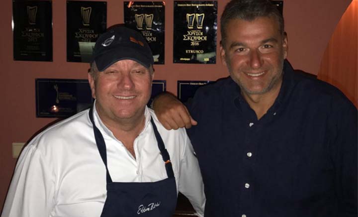 «Υψηλές συναντήσεις στην Κέρκυρα» γράφει στη φωτογραφία του με τον σεφ Έκτορα Μποτρίνι στο «Ετρούσκο» όπου απόλαυσε τη φημισμένη κουζίνα ενώ τις επόμενες ημέρες πέρασε μια βόλτα κι από τους Οθωνούς.