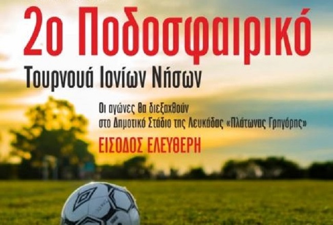 Η Περιφέρεια Ιονίων Νήσων διοργανώνει για δεύτερη συνεχή χρονιά, σε συνεργασία με τις Ε.Π.Σ. Ζακύνθου, Κέρκυρας, Κεφαλλονιάς & Ιθάκης και Πρέβεζας/Λευκάδας το 2o Ποδοσφαιρικό Τουρνουά Ιονίων Νήσων, την Παρασκευή και το Σάββατο 8 & 9 Σεπτεμβρίου 2017 στη Λευκάδα.