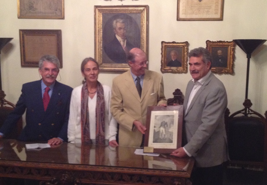 Σημ.: Οι κ.κ. Baschy και Prisse είχαν επισκεφθεί την Κέρκυρα το καλοκαίρι, με την ευκαιρία των διήμερων εκδηλώσεων που είχε οργανώσει οι Φίλοι του Ιδρύματος «Μνήμη Albert Cohen» Κέρκυρας προς τιμήν του Στρατηγού Guillaume Henri Dufour, ο οποίος έζησε στην Κέρκυρα από το 1810 έως το 1814. Στο πλαίσιο της επίσκεψης είχαν συναντηθεί με το Δήμαρχο, Κώστα Νικολούζο, στο Ιστορικό Δημαρχείο, όπου – όπως τόνισαν χθες – είχαν εντυπωσιαστεί από το κτίριο και το γραφείο του Δημάρχου και αποφάσισαν να χαρίσουν έναν πίνακα του Dufour για να προστεθεί – εφόσον και ο Δήμος το επιθυμεί – στη συλλογή της αίθουσας .