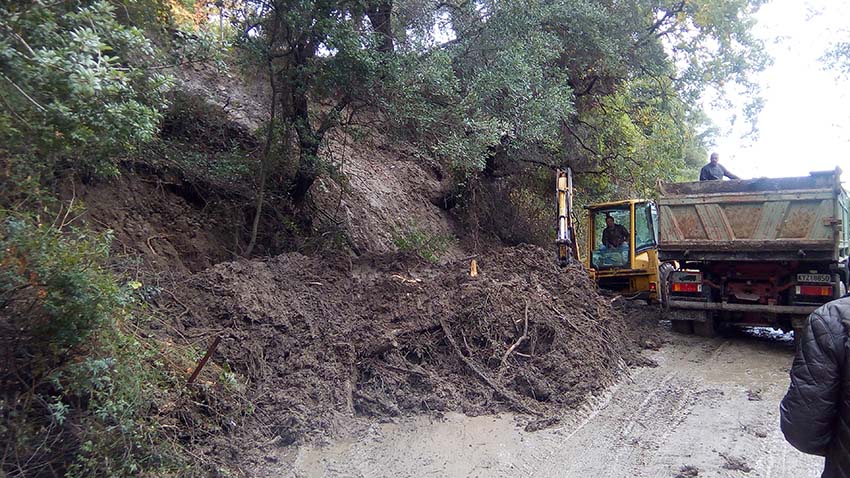 Ο δρόμος κατέρρευσε λίγο πριν από το χωριό, με αποτέλεσμα να διακοπεί η πρόσβαση στα ΙΧ και η κυκλοφορία να γίνεται από το δρόμο που οδηγεί στη Στρογγυλή ή την παράκαμψη προς Μπενίτσες.