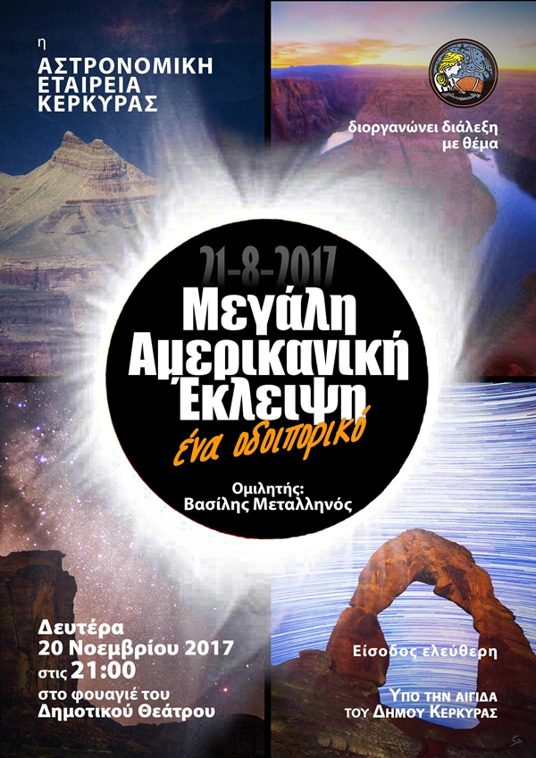 Η Αστρονομική Εταιρεία Κέρκυρας διοργανώνει διάλεξη με θέμα: “ΜΕΓΑΛΗ ΑΜΕΡΙΚΑΝΙΚΗ ΕΚΛΕΙΨΗ: Ένα οδοιπορικό”.