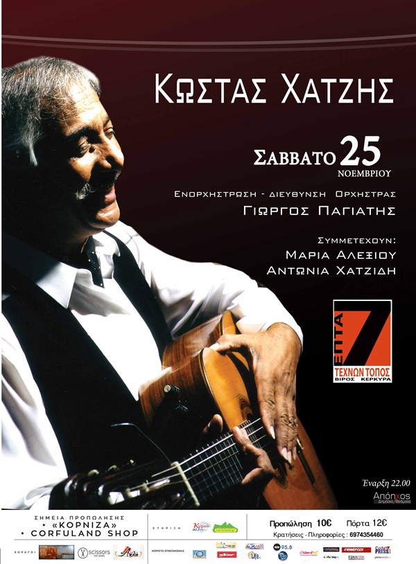 Το Σάββατο 25 Νοεμβρίου, στις 10 το βράδυ, ο Κώστας Χατζής ζωντανά στο Επτά Τεχνών Τόπος.