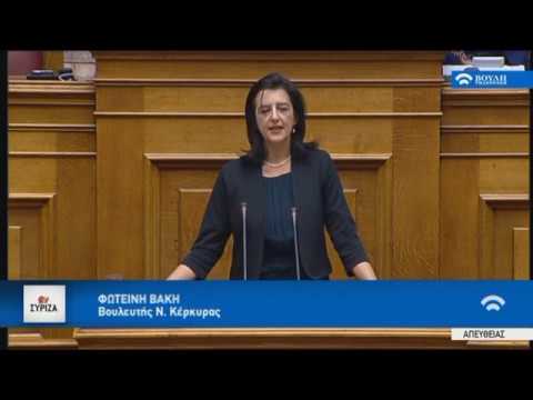 Ομιλία της βουλευτή Κέρκυρας του ΣΥΡΙΖΑ Φωτεινής Βάκη στην Ολομέλεια της Βουλής κατά τη συζήτηση και ψήφιση του σχεδίου νόμου του Υπουργείου Εξωτερικών «Ελληνικό Ινστιτούτο Βυζαντινών και Μεταβυζαντινών Σπουδών».