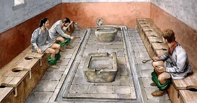 Στην αρχαία Ρώμη μόνο οι πολύ πλούσιοι είχαν την δυνατότητα να έχουν μπάνιο στο σπίτι τους. Όλοι οι υπόλοιποι χρησιμοποιούσαν δημόσια αποχωρητήρια, φτιαγμένα από πέτρα ή ξύλο. Το νερό έτρεχε συνέχεια στις λεκάνες και έστελνε τα απορρίμματα στο αποχετευτικό σύστημα.