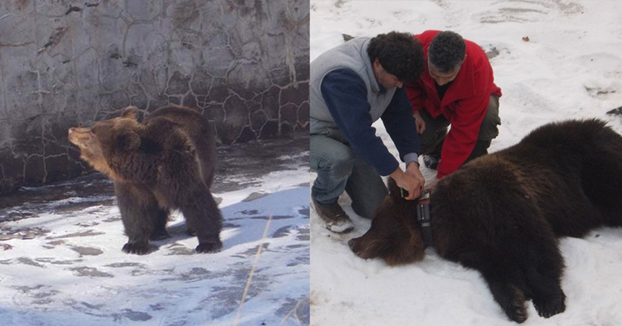 Όπως διαπιστώθηκε η αρκούδα (θηλυκή 5-8 ετών) ήταν σε πολύ καλή κατάσταση, αλλά και πολύ επιθετική, λόγω του έντονου στρεσαρίσματος από τον πολυήμερο εγκλωβισμό της, γι’ αυτό και αναισθητοποιήθηκε με ειδικό όπλο. Η Πυροσβεστική έκοψε παρακείμενο μεγάλο δέντρο και αφού το διαμόρφωσε σαν σκάλα, το τοποθέτησε μέσα στην άδεια υδατοδεξαμενή, όσο η αρκούδα ήταν ακόμα αναίσθητη, για να δημιουργηθεί γέφυρα διαφυγής της.