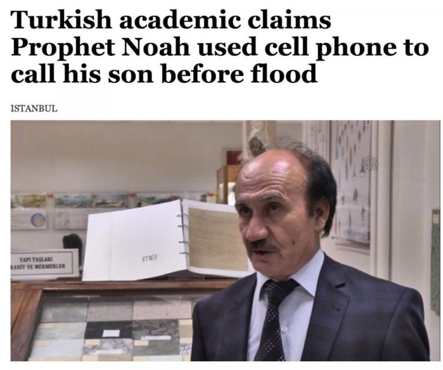 Ότι ο Νώε είχε κινητό τηλέφωνο και το χρησιμοποίησε λίγο πριν ξεσπάσει η πλημμύρα για να συνομιλήσει με τον γιό του. Δεν είναι ένα ακόμη αστείο, είναι δήλωση Τούρκου ακαδημαϊκού.