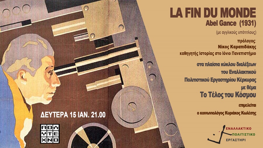 Η εμβληματική ταινία του παγκόσμιου κινηματογράφου "La fin du monde" του Abel Gance (1931) προβάλλεται σε πρώτη παγκόσμια προβολή στην Κέρκυρα, μετά από επεξεργασία και προσθήκη σπάνιων σπαραγμάτων του φιλμ! (με αγγλικούς υπότιτλους)