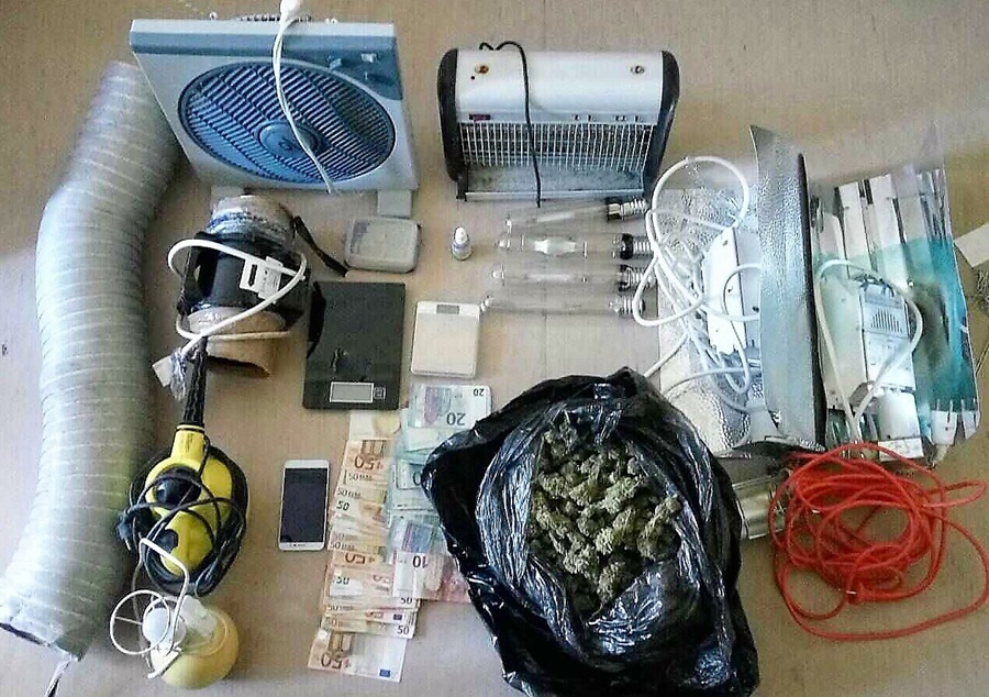 Από την έρευνα που ακολούθησε, παρουσία δικαστικού λειτουργού, βρέθηκαν και κατασχέθηκαν ειδικός εξοπλισμός για την καλλιέργεια της κάνναβης, όπως λαμπτήρες, αεραντλία, σωλήνας εξαερισμού, καθώς επίσης: