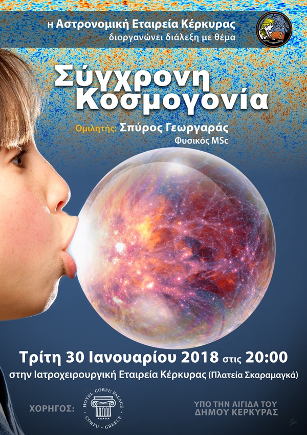 Η Αστρονομική Εταιρεία Κέρκυρας διοργανώνει διάλεξη με θέμα: Σύγχρονη Κοσμογονία.