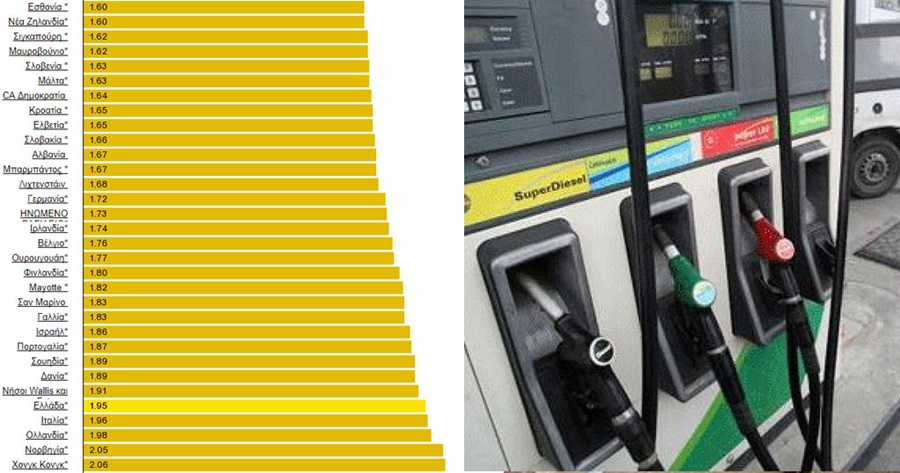 Επίσης το εβδομαδιαίο δελτίο της Ευρωπαϊκής Επιτροπής, δίνει ελαφρώς διαφορετικές τιμές και κατατάσσει την Ελλάδα στην τρίτη ακριβότερη θέση με 1,55 ευρώ, πίσω από την Ιταλία με 1,57 ευρώ, και την Ολλανδία με 1,60 ευρώ.