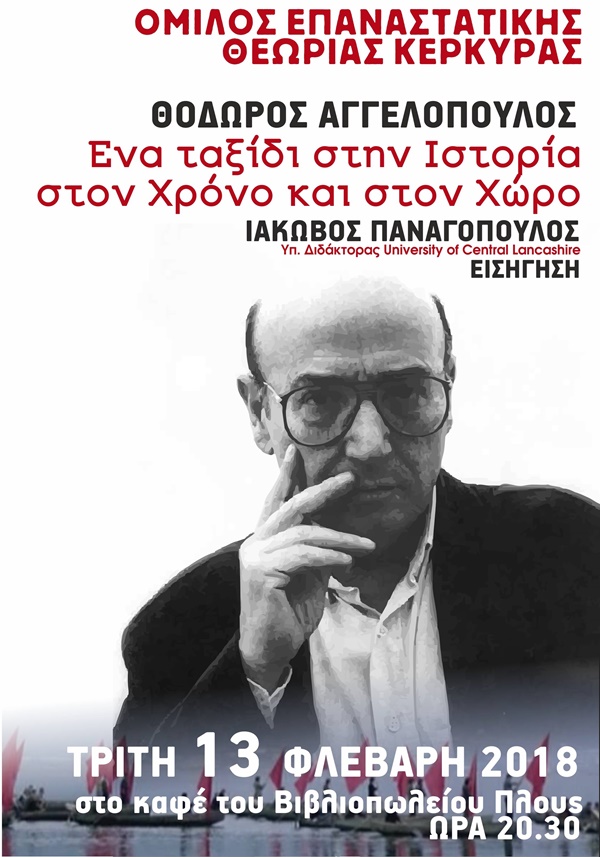 Ο Όμιλος Κέρκυρας στα πλαίσια των δράσεων του 6ου έτους λειτουργίας του διοργανώνει εκδήλωση με θέμα "Θόδωρος Αγγελόπουλος: ένα ταξίδι στην Ιστορία, στο Χρόνο και στο Χώρο"