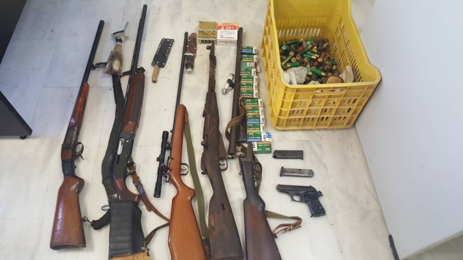 Οι αστυνομικοί εντόπισαν τέσσερα όπλα για τα οποία δεν είχε άδεια και μια καραμπίνα για την οποία, όμως, είχε άδεια, μαζί με περισσότερα από 100 φυσίγγια.