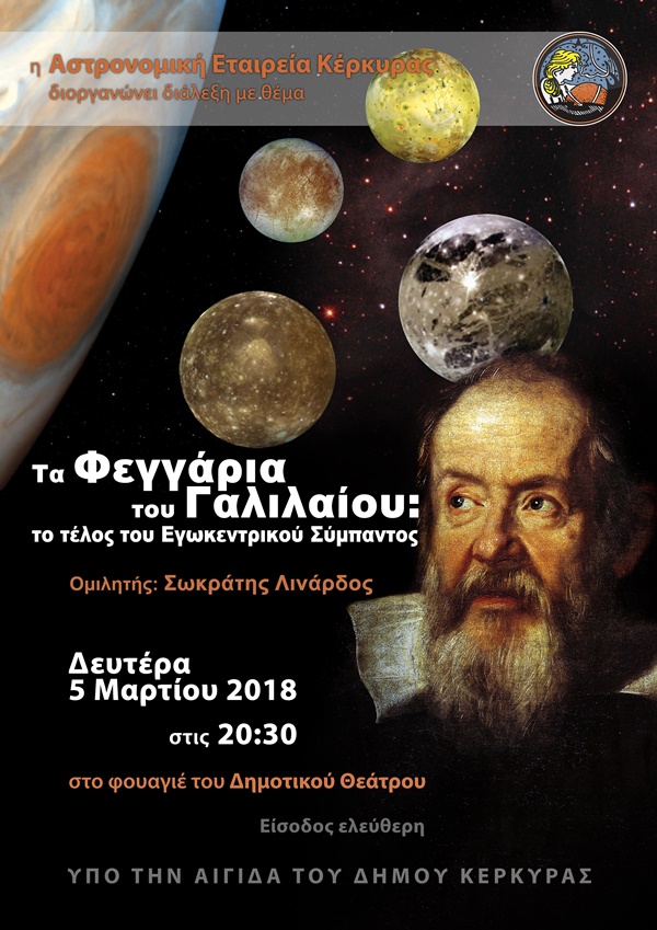 Η Αστρονομική Εταιρεία Κέρκυρας διοργανώνει διάλεξη με θέμα: “ΤΑ ΦΕΓΓΑΡΙΑ ΤΟΥ ΓΑΛΙΛΑΙΟΥ: Το τέλος του Εγωκεντρικού Σύμπαντος”