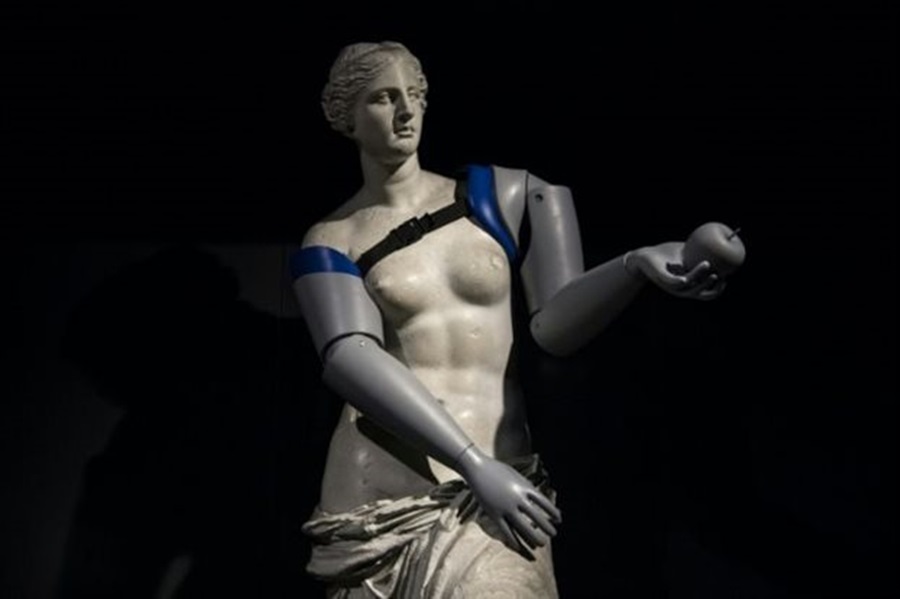 Η διεθνής μη κυβερνητική οργάνωση εξόπλισε το πρωί μέσα σε σταθμό του παρισινού μετρό αυτή η αναπαραγωγή του αγάλματος που εκτίθεται στο μουσείο του Λούβρου. Και αναμένεται να συνεχίσει την «παρέμβασή» της σε άλλα έργα που βρίσκονται στα πάρκα της πρωτεύουσας.