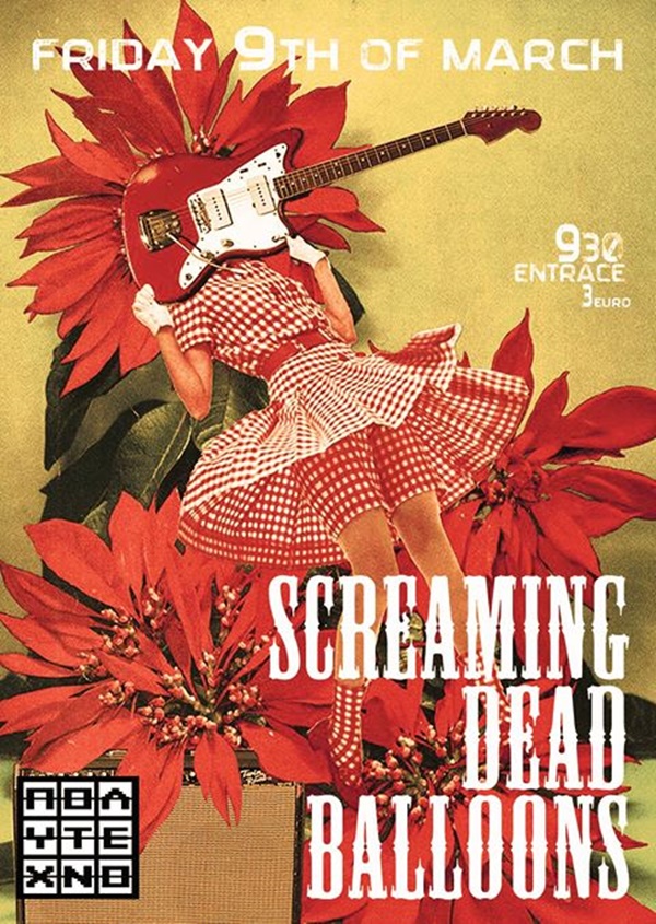 Προσθέτουμε απόλυτη ελευθερία στη μουσική φόρμα και μας προκύπτουν οι Screaming dEAD Balloons… Eδρα τους η Λάρισα, συμμετοχές live δίπλα σε πολύ δυνατά ονόματα με αποκορύφωμα τους Savage Republic, Moon Duo, Singapore Sling, Sonic Jesus, 1000Mods και τους Νomads. Με προσωπικό ήχο δύο δίσκους έναν ακόμη στα σχέδια συν ένα split συμμετοχές συνθέτουν ένα δυναμικό σύνολο και μια πολύ καλή πρόταση για το εγχώριο R’n’Roll ..κοινώς σπεύσατε!!