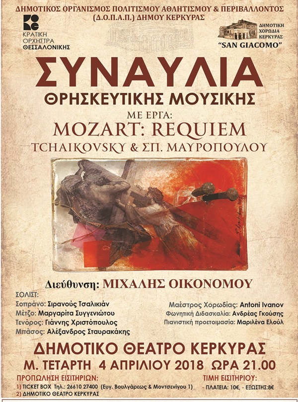 Το πρόγραμμα περιλαμβάνει έργα: W.A MOZART: REQUIEM