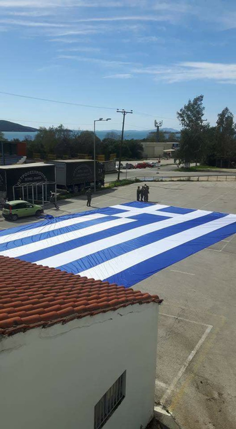 Η έπαρση της μεγαλύτερης σημαίας στη βορειοδυτική Ελλάδα έγινε με τιμές στις 09:30 το πρωί στην παραλία της πόλης της Ηγουμενίτσας.