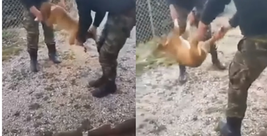Στο βίντεο της ντροπής, απεικονίζονται δύο Έλληνες στρατιώτες να κακοποιούν ένα ανυπεράσπιστο σκύλο, ξεσπώντας σε γέλια.