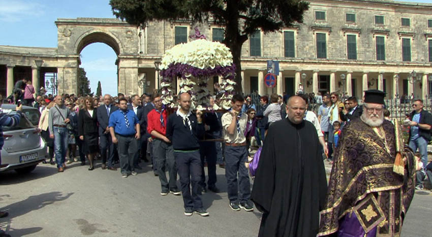 Όλες τις ενορίες της πόλης, συνοδεία φιλαρμονικών αλλά και χορωδιών, σε μια μοναδική ιεροτελεστική πομπή υπό τα βλέμματα δεκάδων χιλιάδων Κερκυραίων και επισκεπτών, Περιφέρουν την εικόνα του Επιταφίου στο Λιστόν, τι Σπιανάδα, το Καμπιέλο, το Κανόνι, τη Σπηλιά και σε κάθε συνοικία της πόλης της Κέρκυρας.