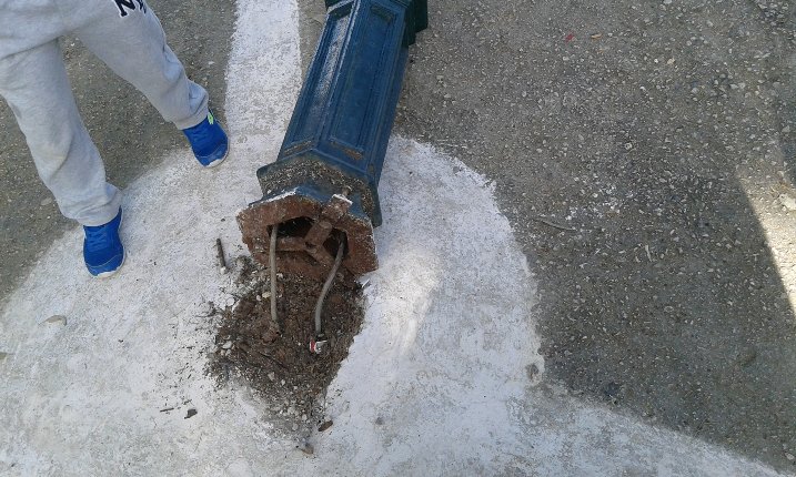 «Σήμερα το μεσημέρι 3 παιδάκια έπαιζαν γύρω από την συγκεκριμένη κολώνα, με αποτέλεσμα να πέσει τραυματίζοντας τα παιδιά. Τα 2 παιδιά υπέστησαν απλές εκδορές ενώ το 3ο παιδί υπέστη σοβαρή κάκωση στο γόνατο. Κι αυτα συμβαίνουν γιατί τα πάντα υπολειτουργούν και η ευθύνη όλη έχει πέσει σε ένα τοπικό συμβούλιο και σε έναν πολιτιστικό σύλλογο. Πλέον υποκαθιστούμε τους πάντες κι ετσι ομόφωνα αποφασίσαμε σαν ΔΣ να κινηθούμε νομικά κατα παντός υπευθύνου. Πολεμάμε με τα οπλα που έχουμε αλλα αυτό δεν αρκεί».