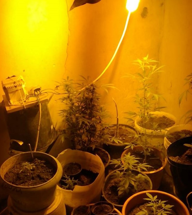 Από την έρευνα που ακολούθησε, παρουσία δικαστικού λειτουργού, βρέθηκαν και κατασχέθηκαν ειδικός εξοπλισμός για την καλλιέργεια της κάνναβης, όπως λαμπτήρας, ανεμιστήρας, ρυθμιστής θερμοκρασίας, καθώς επίσης: