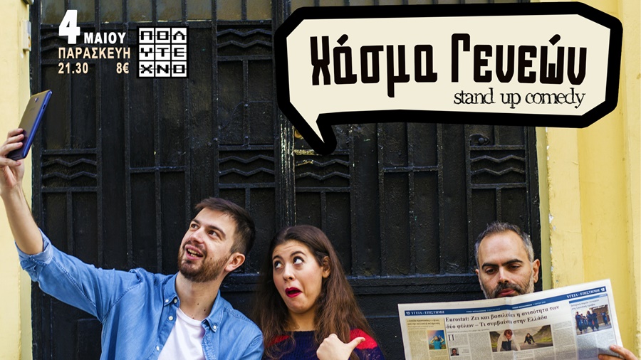 Η γενιά του Γκάλη και η γενιά του facebook. Ανάμεσα τους; Χάσμα. Χάσμα Γενεών! Αυτό το κενό ανάμεσα στο ΠΑΣΟΚ του Ανδρέα και τα φίλτρα στο instagram Έρχονται να γεφυρώσουν με ένα μοναδικό stand up comedy tour o Παναγιώτης Κούδας, η Αλίκη Τσακούμη και ο Βαγγέλης Μουλαράς. Ένας από τους πιο έμπειρους κωμικούς της χώρας που περπατάει με πι, μαζί με δύο ανερχόμενα ταλέντα που δεν έχουν δει συναυλία χωρίς κινητό μπροστά τους επιστρέφουν για την 2η περιοδεία τους ως “Χάσμα Γενεών” και ενώνουν τις φωνές, τις δυνάμεις και τα αστεία τους για ένα σερί παραστάσεων με άφθονο γέλιο, από την Κέρκυρα μέχρι την Αθήνα!