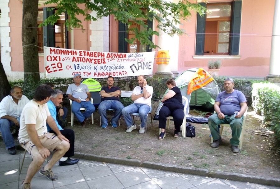 Την απόφαση να κατασκηνώσουν επ΄αόριστον στην είσοδο του Δημαρχείου, στο Μαράσλειο μέγαρο έλαβαν την Τρίτη οι πρώην εποχιακοί εργάτες καθαριότητας.