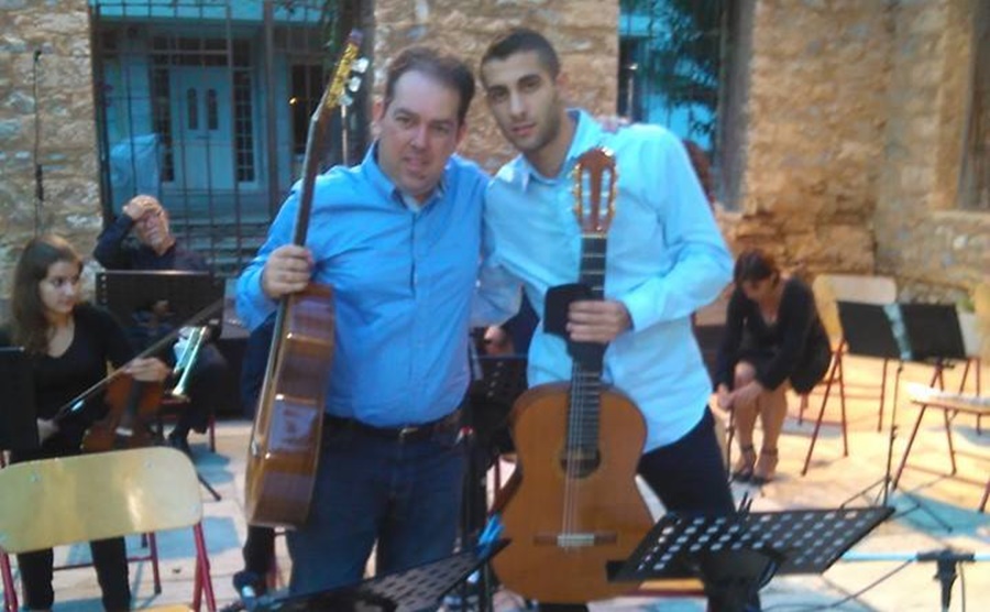 Ο Καλλιτεχνικός Διευθυντής του Φεστιβάλ Κιθάρας Ιονίων Νήσων, Γιώργος Γκόλγκαρης, Σολίστ με τον Bασίλη Μαστοράκη στην Συναυλία της Συμφωνικής Ορχήστρας, του Δημοτικού Ωδείου Νίκαιας-Ρέντη.