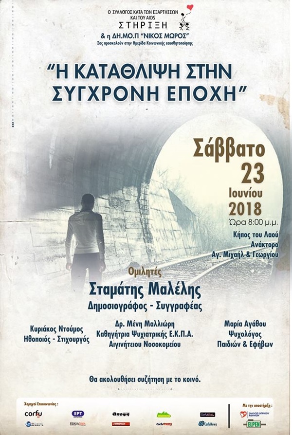 Εκδήλωση διοργανώνει ο σύλλογος ΣΤΗΡΙΞΗ με θέμα: «Η Κατάθλιψη στην σύγχρονη εποχή» το Σάββατο 23 Ιουνίου στις 8:00 μ.μ. στον Κήπο του Λαού.
