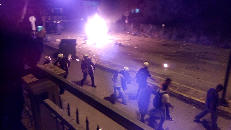 Τα ΜΑΤ απάντησαν με χημικά και η κατάσταση επιδεινώνεται από το σκοτάδι που επικρατεί στον περιφερειακό.