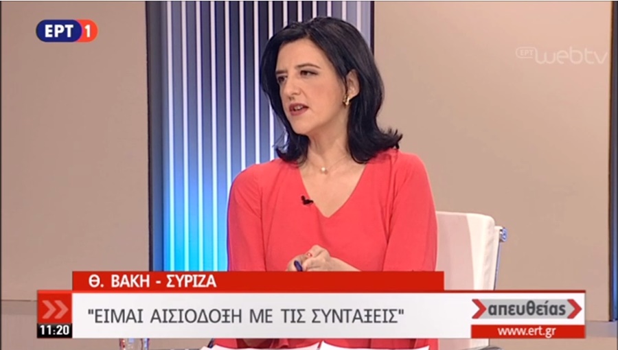 Σε ό, τι αφορά την εφαρμογή ή μη περικοπών στις συντάξεις και μείωσης του αφορολόγητου ανέφερε πως «είναι πολιτικό και ηθικό μας καθήκον να ανακουφίσουμε και να μην επιβαρύνουμε την κοινωνία» καθώς και ότι «δεν υπάρχει έλλογος άνθρωπος με στοιχειώδη κοινωνική και ηθική ευαισθησία που να μην θέλει να μην εφαρμοστούν αυτά τα μέτρα». Εξάλλου, υπογράμμισε, τα μέτρα αυτά είχαν ψηφιστεί διότι το επιχείρημα τότε του ΔΝΤ ήταν ότι τα νούμερα δεν βγαίνουν και ότι το χρέος δεν είναι βιώσιμο. «Όμως, τα νούμερα βγήκαν και με το παραπάνω, η χώρα βγήκε από την επιτροπεία και οι δεσμεύσεις της τώρα αφορούν την εκπλήρωση των στόχων, με την επιλογή των μέσων για την εκπλήρωσή τους να είναι ευθύνη της κυβέρνησης» τόνισε. Ως εκ τούτου, ανέφερε η Φ. Βάκη, «εφόσον τα δημοσιονομικά και μακροοικονομικά μας μεγέθη πηγαίνουν τόσο καλά, ποιος ο λόγος να βυθιστεί η κοινωνία σε περισσότερη ύφεση και λιτότητα;».